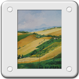 …la spatola, strumento particolarmente consono all'innata abilità, sembra accarezzare la tela, depositando delicatamente, senza tensione, la giusta quantità di colore che, in modo del tutto naturale, dà vita a paesaggi marchigiani, scene agresti, immagini floreali di grande suggestione.